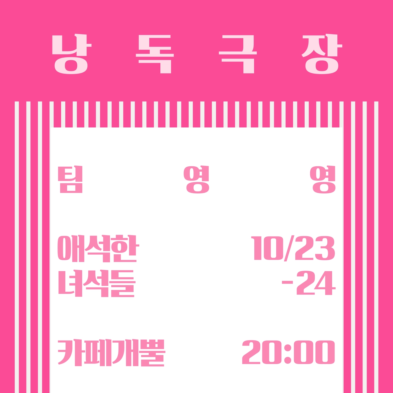 | 10/24 | [낭독 극장] 팀 영영의 <애석한 녀석들>(20시 | 개뿔) |
