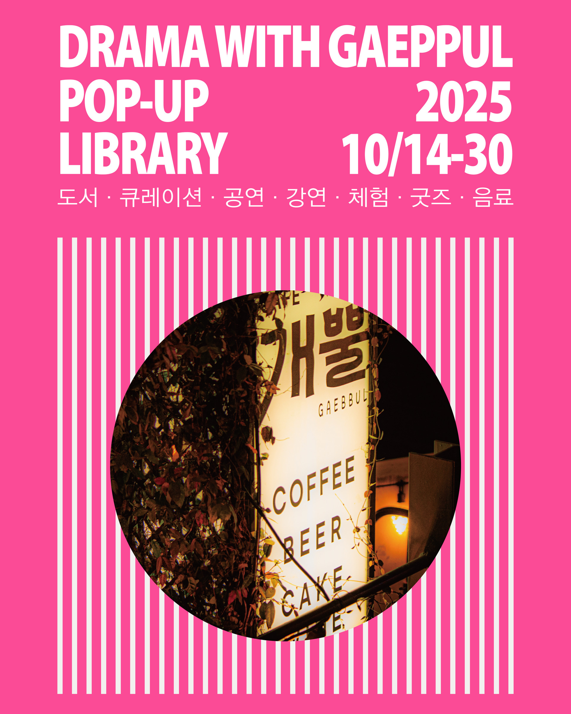 2025년 10월 14일부터 20일까지 낙산 성곽길 소재의 카페 개뿔에 지만지드라마 팝업 라이브러리를 마련합니다.