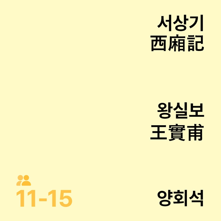 명대 극작가 겸 연극평론가 가중명은 모든 원잡극 가운데 “<서상기>가 천하제일”이라고 단정했다. 청춘 남녀의 사랑을 섬세한 감각과 유려한 필치로 그려낸 중국 고전희곡의 대표작.